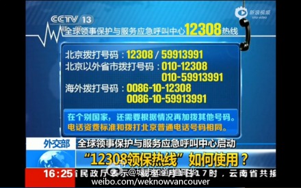 海外中国公民,紧急情况打12308电话