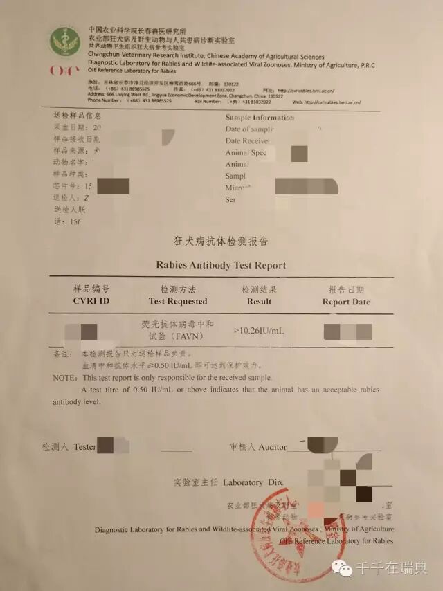 中国农业科学院长春兽医研究所(国内唯一欧盟认可出具狂犬病抗体检测报告资质的实验室):http://cvrirabies.bmi.ac.cn/