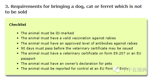 瑞典农业部(瑞典对宠物入境的要求,基本是按照欧盟相关标准制定):