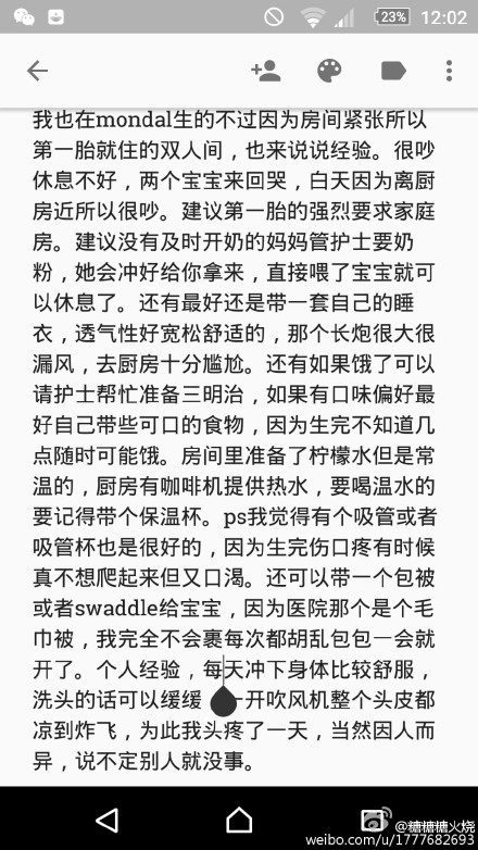 兜儿兜儿同学在哥漂:我只想说一点。。如果生完孩子第一个24小时没有奶的妈妈一定记得第一个夜里找护士直接要奶粉喂一下,我没经验,愣是把孩子饿的血糖低了才喂奶粉。。![[可怜] [可怜]](http://img.t.sinajs.cn/t4/appstyle/expression/ext/normal/af/kl_org.gif)