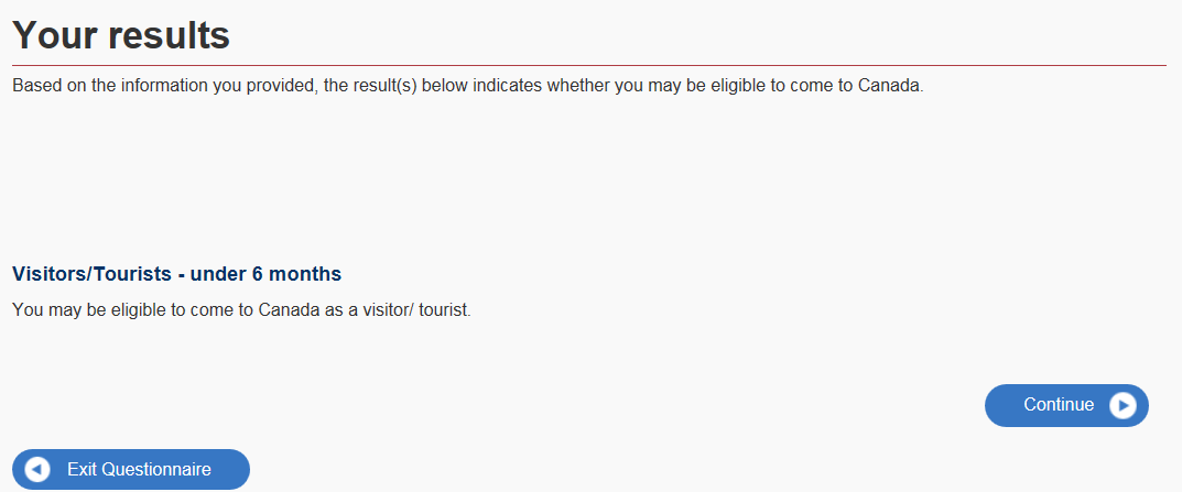 进去后如实填写就行,在这不做过多说明了。总之填完后你会到一个界面,tourist visit和business visit结论都是可以网申。如果你的case不一样就请自己研究了。界面如下图,选continue