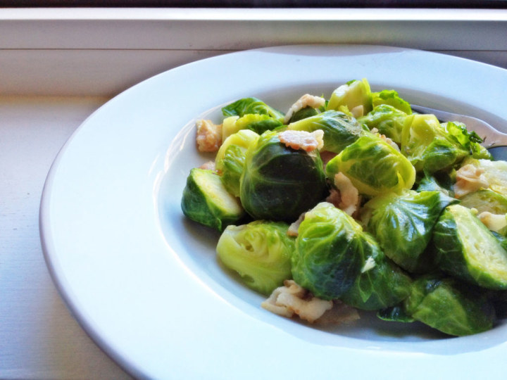 美国超市里甘蓝的变体众多,大多数味道平平,这种小球的口感最嫩。甘蓝类大多数都需要先加少量油盐焯水,一方面去掉苦味,一方面保持叶色翠绿。然后改刀,用培根油炒即可。西式吃法,或拌成沙拉,或烤后当做配菜。