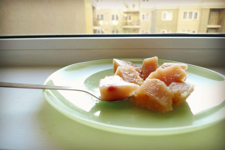 红色芹菜叫大黄…其实完全不是芹菜。大黄在中医里入药,在欧美则多用于甜点。味道酸,西式做法多用于制成果酱拌酸奶,或者作为水果挞的馅料。其实,它可以作为山楂的完美替代品。切块后加少量水熬煮,加入冰糖调整到喜欢的酸甜程度,煮至完全融化后加入吉利丁或者其他定型剂冷藏,就制成了大黄版山楂糕。放一点儿枸杞,成型后再浇一点儿桂花蜜或者柚子蜜,正是中式甜点的温婉清凉。